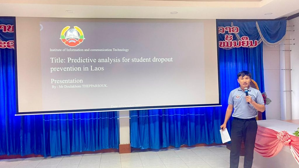 ຄັ້ງວັນທີ 17-19 ຕຸລາ 2025, ສະຖາບັນເຕັກໂນໂລຊີການສື່ສານຂໍ້ມູນຂ່າວສານ ໄດ້ຈັດຝຶກອົບຮົມສໍາມະນາ ໃນຫົວຂໍ້ ICT capacity building and enhanced quality of education thru academic research of IICT ທີ່ ພະແນກເຕັກໂນໂລຊີ ແລະ ການສື່ສານ ແຂວງຄໍາມ່ວນ ໂດຍມີບັນດາທ່ານ ຄະນະນໍາ ແລະ ພະນັກງານ-ຄູ ອາຈານ ພາຍໃນສະຖາບັນ ແລະ ພະນັກງານວິຊາການ ພະແນກ ຕສ ແຂວງຄໍາມ່ວນ ເຂົ້າຮ່ວມທັງໝົດ 30 ທ່ານ, ຍິງ 13 ທ່ານ.
